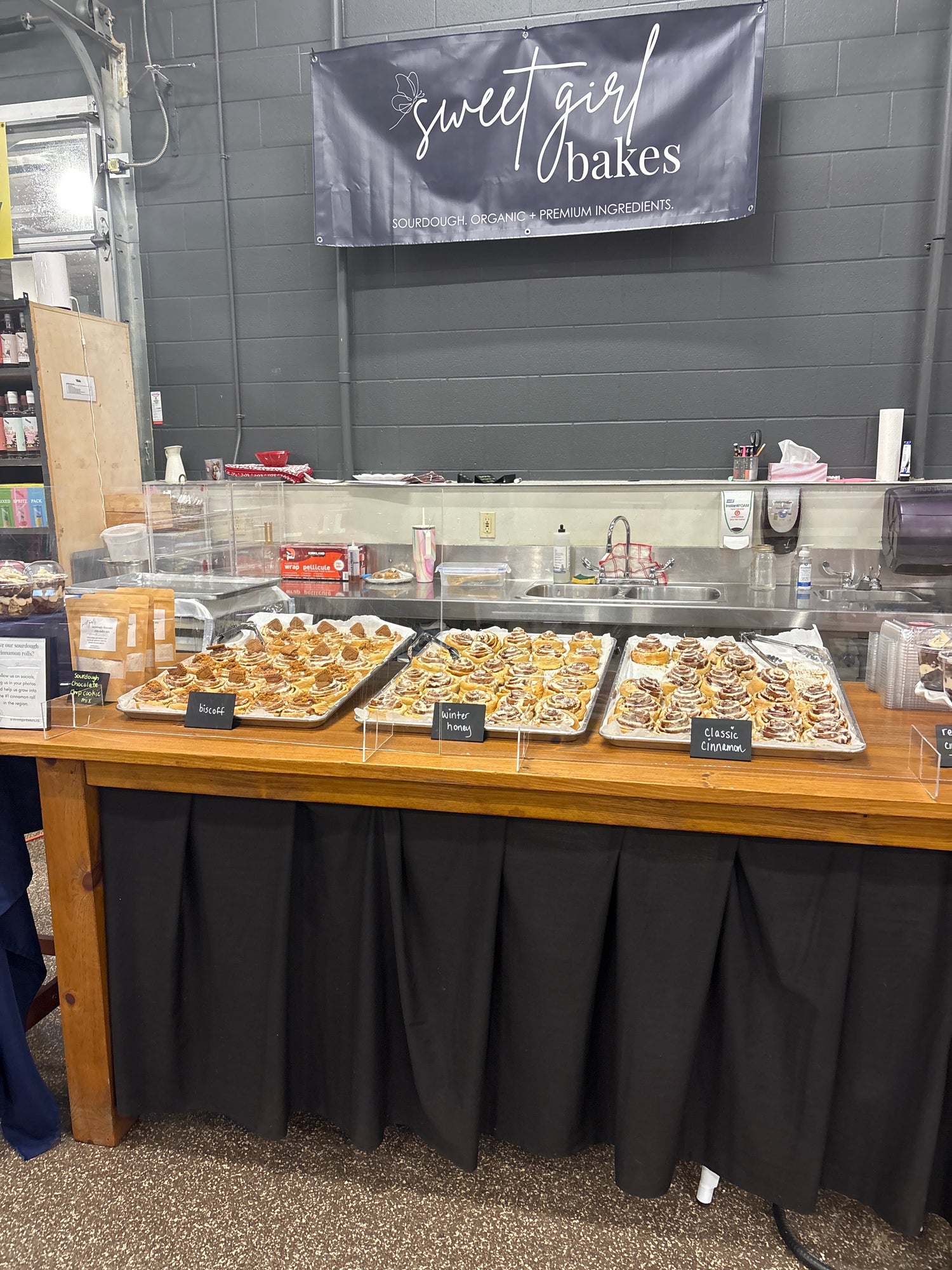 Fresh sourdough scrolls, rotating flavours, and small-batch treats are baked for the market and available until we sell out.